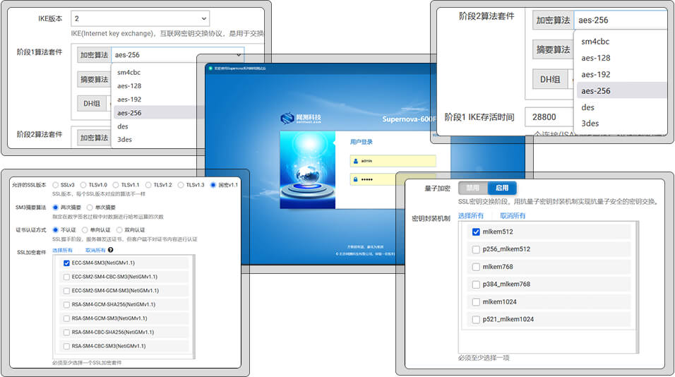 网测仪表支持完整的商密、国密、抗量子算法套件,对于IPSec VPN、SSL VPN、HTTPS三种应用场景,全部支持商密、国密、抗量子算法。在国内信息安全测试领域,网测仪表是无冕之王,是性能最优异、运行最稳定、算法支持最多、场景适用最广的国产仪表。